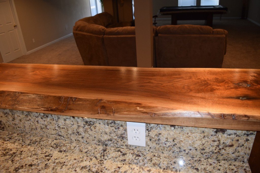 This was one of my favorite projects because the client let me be creative. I had surplus engineered wood flooring material given to me by a friend and I repurposed it for this bar. I used the flooring as wall paneling to give it the rustic, old western bar look. When they told me I could add accent lighting I went a little crazy. Putting accent lighting above the cornice, below the bar top, and behind the glass shelves holding the liquor bottles.